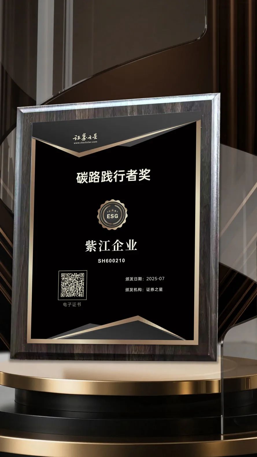在证券之星联合妙盈科技、中国首席经济学家论坛举办以“ESG 实践与价值创造”为主题的2025证券之星ESG年度论坛暨第三届ESG新标杆企业奖颁奖活动上,紫江企业股份凭借在环境、社会和治理领域的综合表现以及碳减排方面的卓越实践、2024 年度可持续发展报告成果获颁 “碳路践行者奖”。